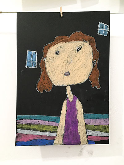 Προσωπογραφία με λαδοπαστέλ σε μαύρο χαρτί.
