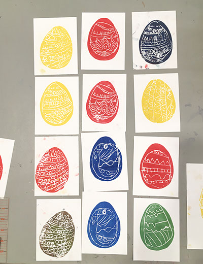 Χαρακτική και τυπώματα με αφρώδη υλικά, από τα τμήματα 4-6 και 6-8 ετών.