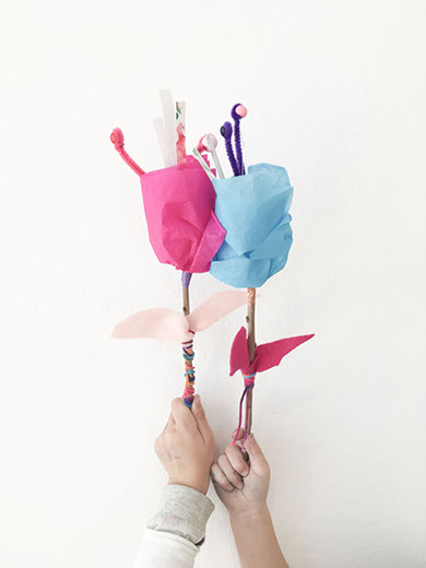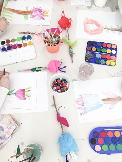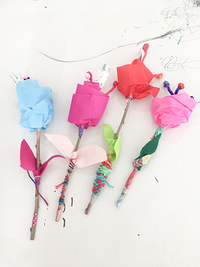 Κατασκευή λουλουδιών και στη συνέχεια απόδοση με νερομπογιές μέσω παρατήρησης (τμήμα 4 – 6 ετών).